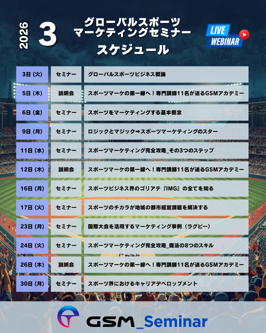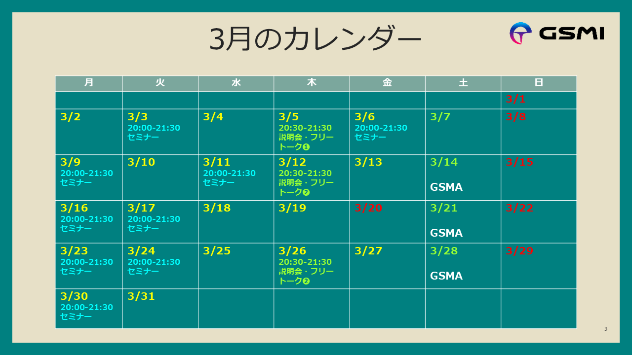 3月度のGSM_イベントカレンダーの案内です。